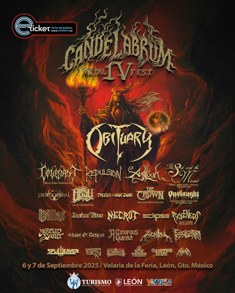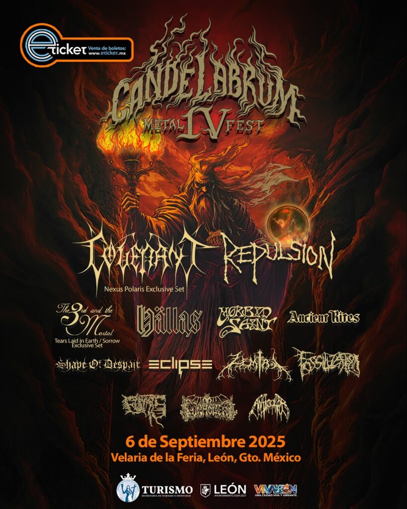 Ha sido publicado el cartel definitivo del Candelabrum Metal Fest IV, así como la separación de bandas por día. Destacados por su logística y curaduría de bandas, los organizadores avanzan en lo que parece será nuevamente una gran edición con grandes exponentes del metal subterráneo, quienes se espera que acudan sin contratiempos a este aquelarre metalero en León, Guanajuato.