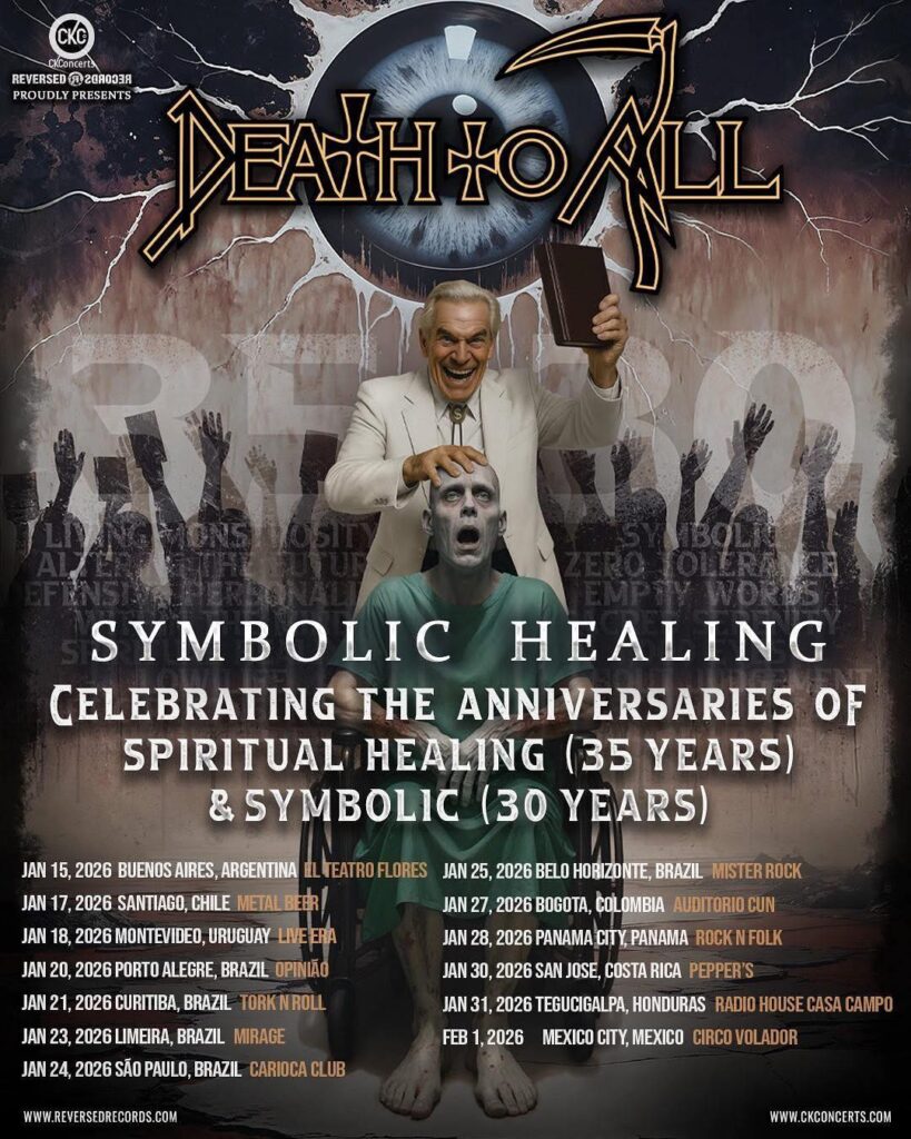 Death to All, la banda tributo a Death, traerá su gira Symbolic Healing a Latinoamérica iniciando en Argentina, el 15 de enero y llegando por primera vez a las ciudades de Montevideo, Panamá y Tegucigalpa.